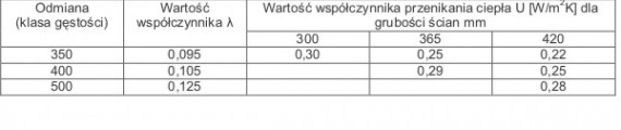 Tabela 1. Wartości współczynnika przenikania ciepła U dla ścian jednowarstwowych wykonanych z betonu komórkowego H+H.