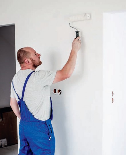 Wpływ na dobór narzędzi ma struktura malowanej powierzchni oraz to, jaką wybraliśmy farbę. Nigdy nie kupujmy niskiej jakości pędzli – podczas malowania będą pozostawiać włosie na ścianach. Natomiast dobór wałków nieodpowiednich do danej faktury ściany może utrudniać równomierne rozprowadzenie farby. Do farb rozpuszczalnikowych powinniśmy zakupić pędzle i wałki z naturalnych materiałów, a do pozostałych – z syntetycznych lub mieszanych. Do zagruntowania ścian przydatny będzie pędzel ławkowiec. Kupując wałek, zwróćmy uwagę, czy włosie jest dobrze osadzone i nie wypada z wałka. Długość włosia powinna wynosić co najmniej 5 cm. Wałków z krótkim włosiem (4-13 mm) używamy, gdy ściany są gładkie. Z kolei do chropowatych powierzchni wybierzmy pędzel o dłuższym włosiu lub wałek o dłuższym runie. Szerokość wałka do malowania dobieramy pod kątem powierzchni, jaką mamy do pomalowania. Im jest ona większa, tym szerszy wałek (12, 15, 18, 25 cm). Wąskie wałki (5, 8 cm) pomogą nam dotrzeć do narożników i innych zakamarków. Niezbędne do malowania są także taśmy i folie malarskie oraz kuwety – aktualnie dostępne są jednorazowe wykonane z grubej folii.